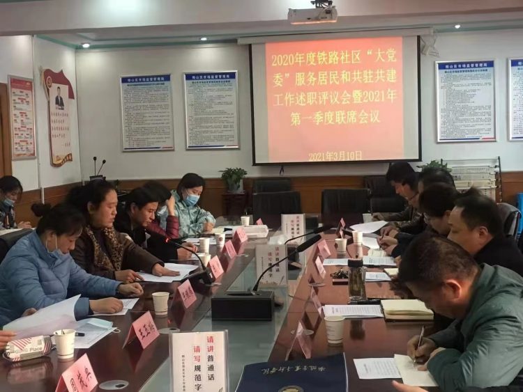 3月10日下午,在鐵路社區(qū)會議室,城泊公司黨支部參加鐵路社區(qū)2020年度“大黨委”成員服務(wù)居民和共駐共建情況述職評議會暨2021年度第一季度聯(lián)席會議。