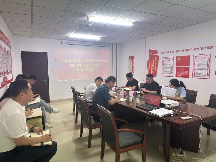 8月11日上午,市建投集團(tuán)黨委委員、紀(jì)委書記、監(jiān)察專員姜斌一行到淮北市惠黎建設(shè)工程管理有限公司調(diào)研指導(dǎo)工作。姜斌一行實(shí)地查看了惠黎建設(shè)公司的辦公場所、開評標(biāo)場所和招標(biāo)代理業(yè)務(wù)的相關(guān)資料,惠黎建設(shè)主要負(fù)責(zé)人匯報(bào)了公司今年以來的業(yè)務(wù)發(fā)展情況和下一步工作打算。參會(huì)的集團(tuán)公司紀(jì)委工作人員就風(fēng)險(xiǎn)管控、提質(zhì)增效、精細(xì)化管理等方面給予指導(dǎo)。