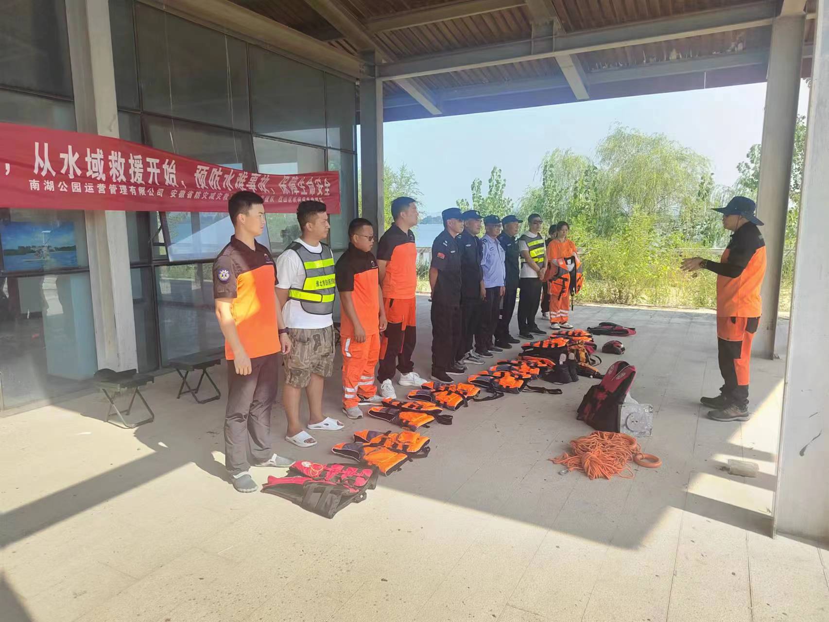 為了進一步增強社會救援隊伍的整體戰(zhàn)斗水平,提高水域救援安全知識,掌握水上救援技能。2023年8月19日,在淮北市烈山區(qū)應(yīng)急管理局及南湖公園運營管理有限公司領(lǐng)導(dǎo)的支持與幫助下,淮北市烈山區(qū)民間應(yīng)急救援隊聯(lián)合南湖公園管理有限公司人員共同開展“預(yù)防水難事故,保障生命安全”專題水域訓(xùn)練。