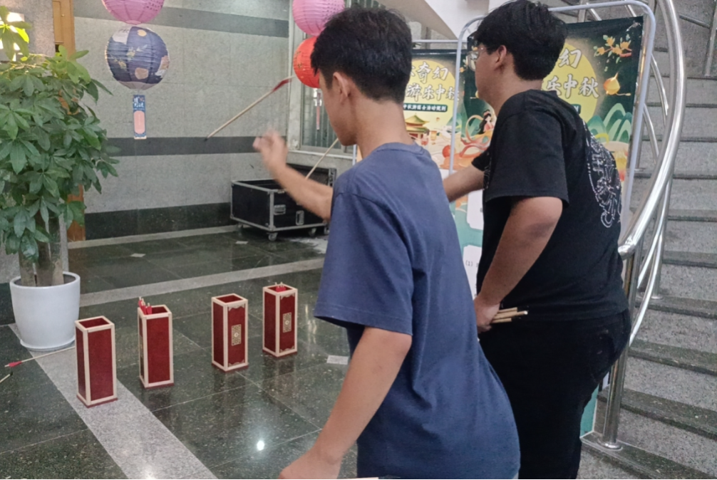 在活動舉辦期間,支部書記作為現(xiàn)場調(diào)度,身影穿梭在街區(qū)的每個角落。活動中設(shè)置了各種各樣的趣味游戲關(guān)卡,包括猜燈謎、竹林對詩、趣味投壺等。通過游戲不僅加深了市民游客對中秋文化的了解,也增強了對傳統(tǒng)文化的認(rèn)同感和自豪感。南湖傳媒黨支部黨員干部及公司人員奮戰(zhàn)在活動第一線,充分發(fā)揮了黨組織戰(zhàn)斗堡壘作用和黨員先鋒模范作用。
