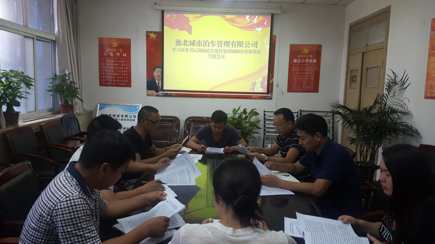8月22日上午11時,淮北城市泊車管理有限公司組織召開領(lǐng)導干部及機關(guān)人員專題會議,傳達學習市委書記黃曉武調(diào)研建投集團時的重要講話精神,研究部署貫徹落實講話精神的有關(guān)舉措。