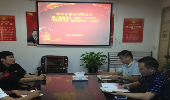 10月9日,保安公司黨支部在公司二樓會(huì)議室組織黨員集中收看《榜樣》專題片,觀看后就如何“向榜樣看齊,做合格黨員”進(jìn)行了討論,黨員們結(jié)合自身崗位實(shí)際,積極發(fā)言,談體會(huì)、談感受,找到了自己學(xué)習(xí)的榜樣。
