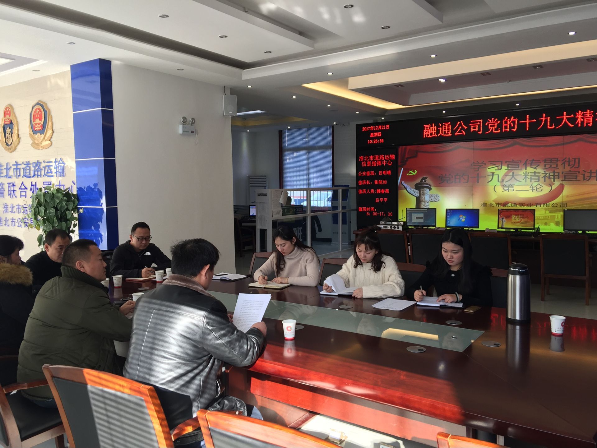 按照集團(tuán)統(tǒng)一部署要求,12月21日融通公司全體員工在市道路運輸信息指揮中心一樓大廳進(jìn)行第二輪學(xué)習(xí)傳達(dá)黨的十九大精神。