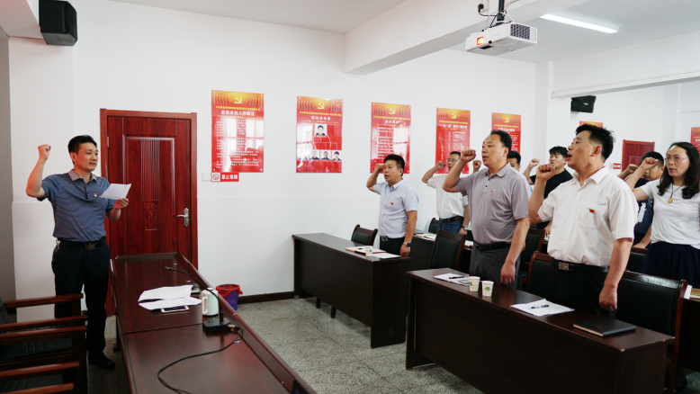 “我志愿加入中國共產(chǎn)黨,擁護黨的綱領(lǐng),遵守黨的章程,履行黨員義務(wù),執(zhí)行黨的決定,嚴守黨的紀律,保守黨的秘密,對黨忠誠,積極工作,為共產(chǎn)主義奮斗終身,隨時準備為黨和人民犧牲一切,永不叛黨”。參會黨員同志們集體起立,舉起右拳,面向黨旗再次莊嚴宣誓。隨后,黨員代表同志們重溫往昔,朗讀入黨志愿書。