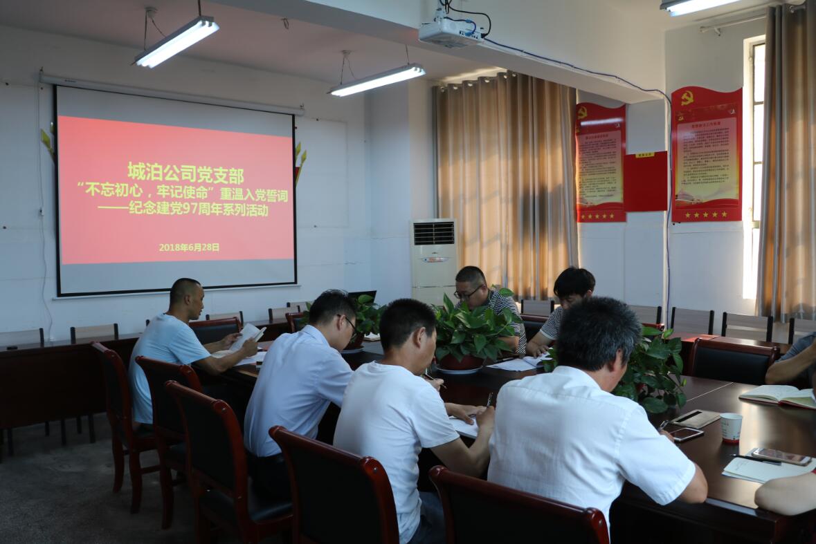 6月28日上午,城泊公司黨支部根據(jù)集團(tuán)公司《關(guān)于開(kāi)展紀(jì)念建黨97周年系列活動(dòng)的通知》精神,組織全體黨員干部開(kāi)展了“誦讀經(jīng)典”及“重溫入黨誓詞”活動(dòng)。
