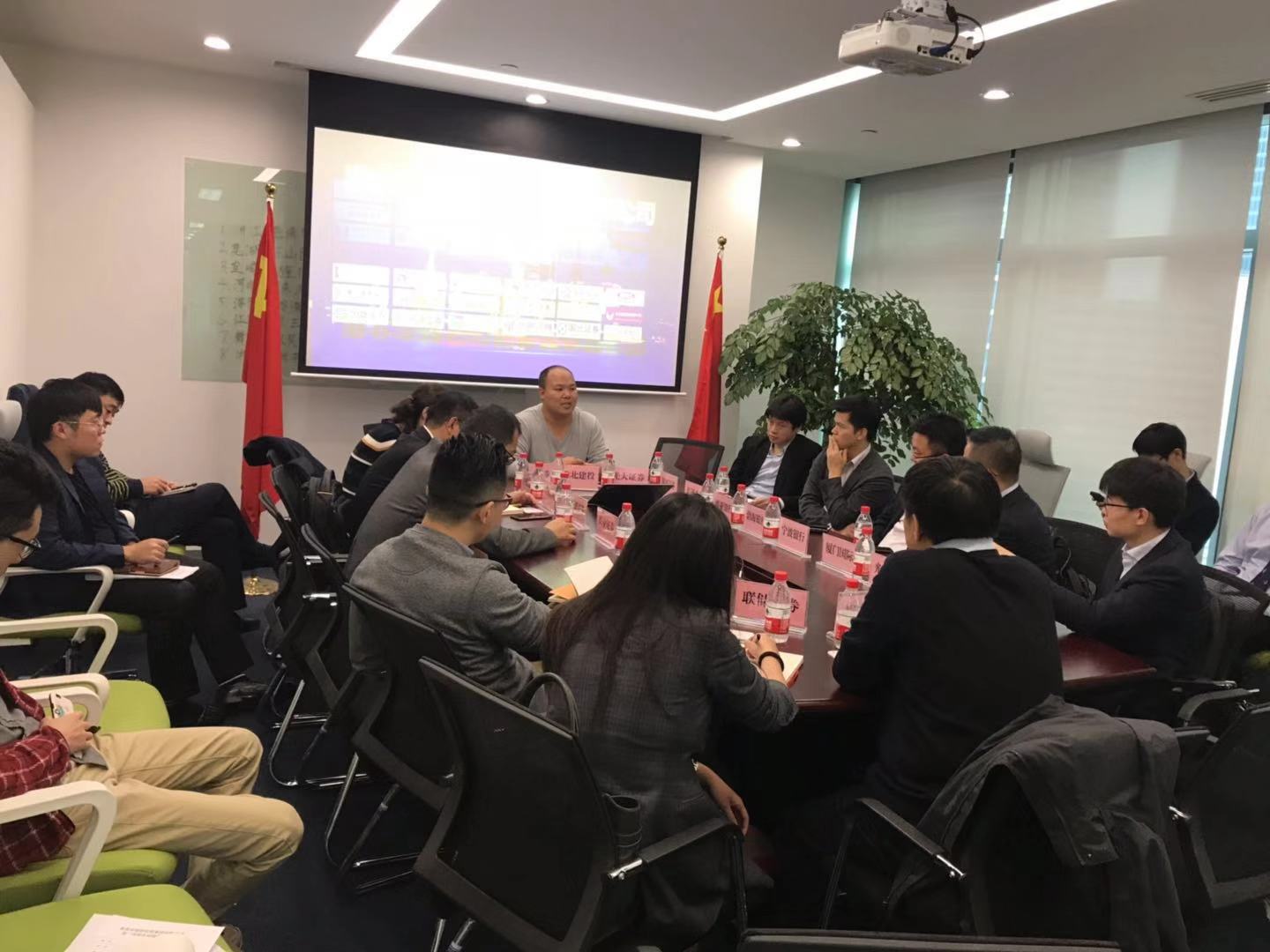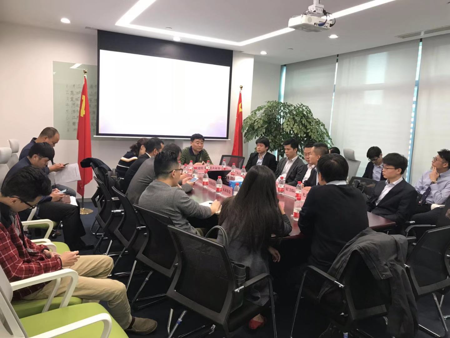 2018年10月31日下午,集團公司駐上海辦事處負責人王智在辦事處會議室主持召開第一次銀企對接會。上海市金融辦金融管理處處長王宏君、集團公司融資一部部長劉風雷、融資二部李子恒及寧波銀行金橋支行行長肖磊、國元證券副總經理王琦、長城信托副總經理顧光臣、上海裕安投資集團投行部總經理蔡為群,光大銀行聯(lián)洋支行行長張建紅等21家金融機構代表參加了此次對接會。