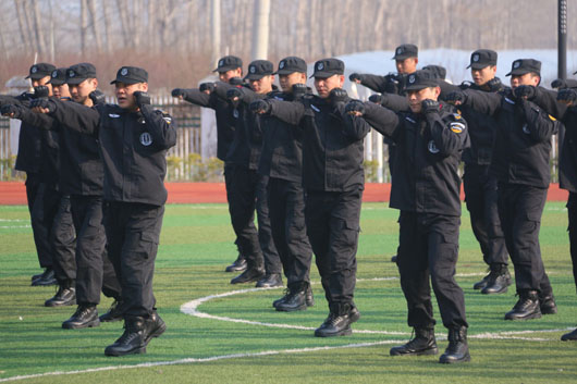 隨著章局長一聲令下,淮北市保安有限公司做為第一方隊出場,押運隊員們喊著整齊響亮的口號,踏著有力的步伐登場,演練了剛勁勇猛、動作連貫的格斗拳并獲得場下觀眾的陣陣喝彩和掌聲。