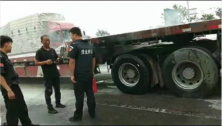 2019年9月3日下午15點(diǎn)30分,押運(yùn)皖F2Y15車組,從濉溪押運(yùn)三中隊(duì)出發(fā)執(zhí)行鐵佛網(wǎng)點(diǎn)加鈔任務(wù),15點(diǎn)50分途經(jīng)火神廟路段101省道紅綠燈路口時(shí),見(jiàn)一輛皖LB2711的大貨車底部冒出濃煙,輪胎隨時(shí)可能爆炸,貨車司機(jī)卻未發(fā)現(xiàn)。車長(zhǎng)趙璐當(dāng)機(jī)立斷讓駕駛員靠邊停車,按照押運(yùn)應(yīng)急處突預(yù)案,安排警戒員和業(yè)務(wù)員在車內(nèi)保持警戒。自己拿出車上的兩個(gè)滅火器沖到貨車旁,冒著被炸傷的危險(xiǎn)找準(zhǔn)火源及時(shí)撲救。此時(shí)車主已經(jīng)報(bào)警,消防車也趕到。趙璐見(jiàn)情況已經(jīng)控制,默默轉(zhuǎn)身離去繼續(xù)執(zhí)行押運(yùn)任務(wù)。