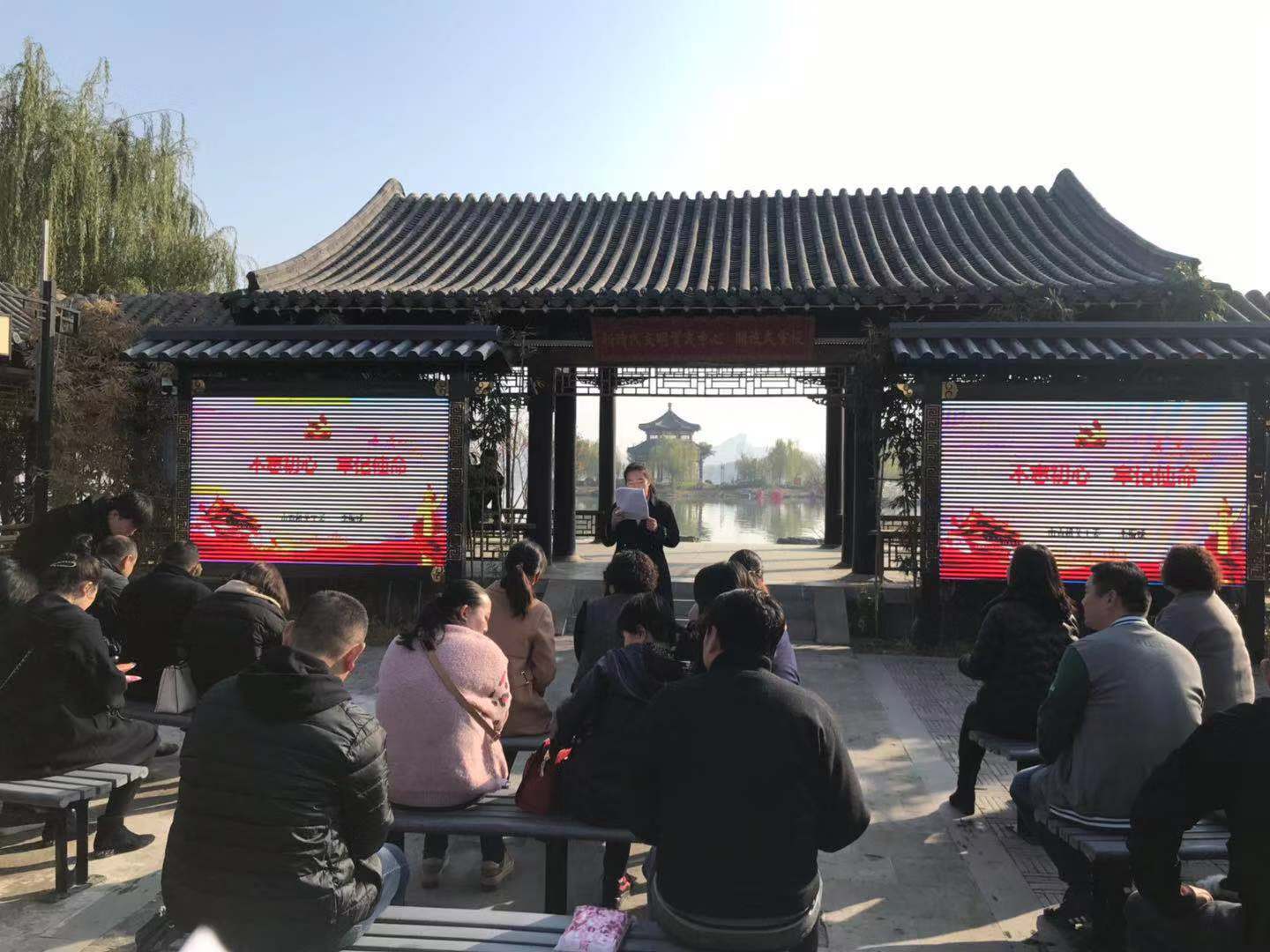 今日南湖分外暖。11月22日上午,市建投集團(tuán)與新華社區(qū)結(jié)對共建,在南湖公園開展“不忘初心、牢記使命”主題教育專題黨課活動(dòng),新華社區(qū)總支部書記羅莉同志擔(dān)任主講。黨員代表共30余人參加本次黨課活動(dòng)。